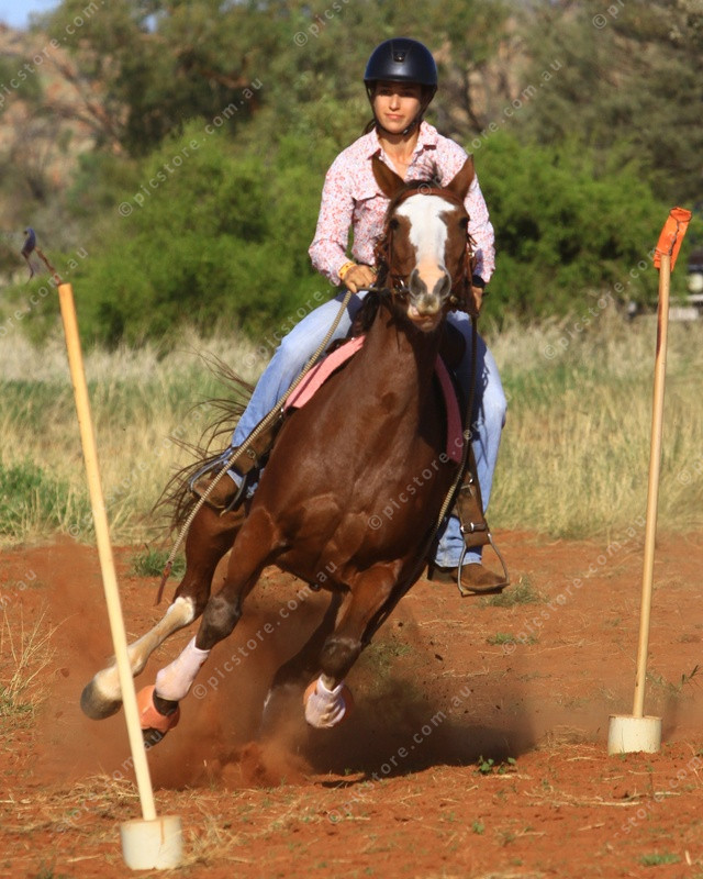 SLALOM: Olivia Briggs puts her horse through its paces in the slalom event. (PIC: PHIL WILLIAMS)