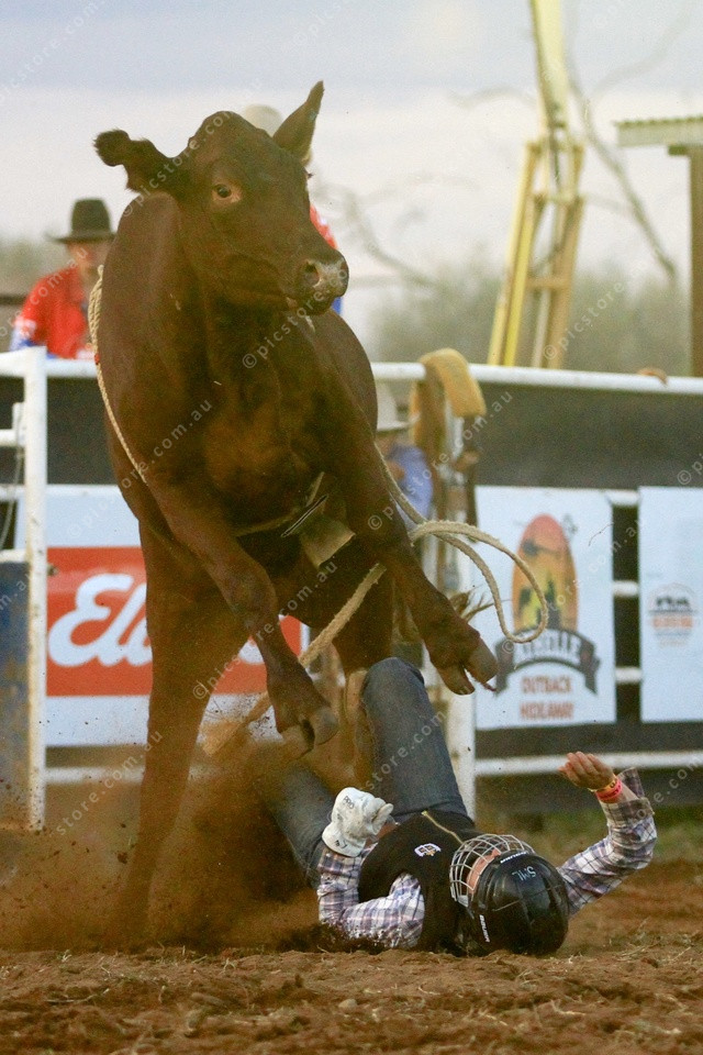 ROUGH: Jasmine Nelson had a rough landing in the Open Bullock Ride. (PIC: PHIL WILLIAMS)