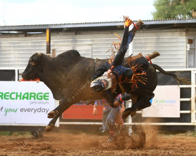 AWKWARD: A rider about to have an awkward landing after being tossed. (PIC: PHIL WILLIAMS)