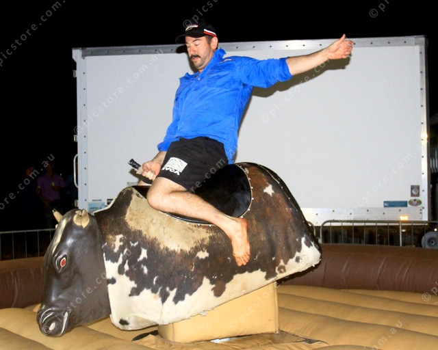 YEE_HAA: Zoran Elliot takes on the mechanical bull at Aileron. (PIC: PHIL WILLIAMS)