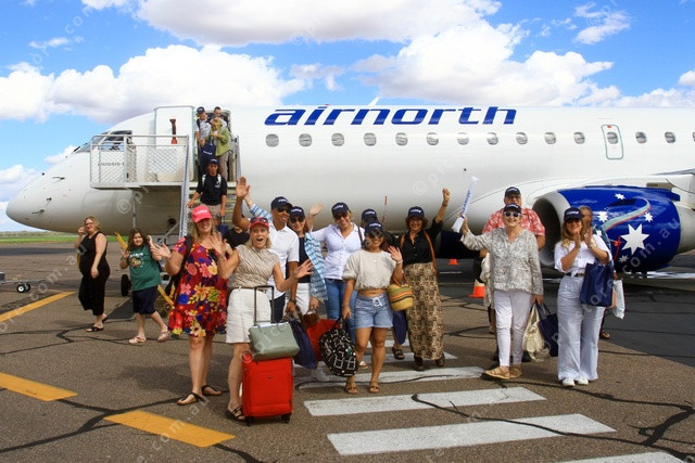 CNS-ASP: Some of the passengers from the the first Cairns to Alice Springs flight make their way to the Alice Springs arrivals lounge. (PIC: PHIL WILLIAMS)