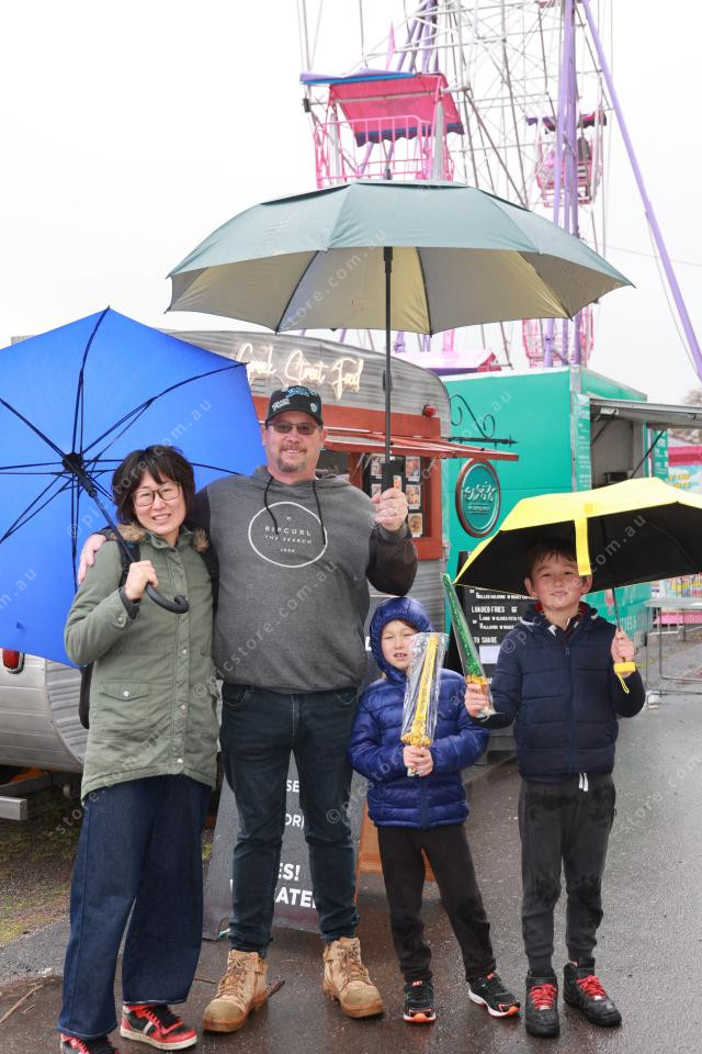 Chika, Gavin, Owen, and Jake Pakes braved the weather to be at Willunga’s Almond Blossom Festival. (Jesse Ehlers 492534_12)