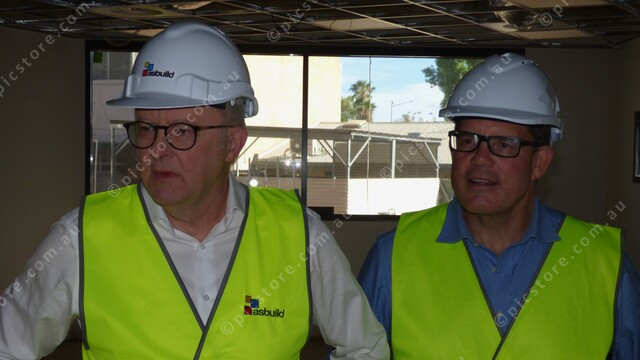 VISIT: Prime Minister Anthony Albanese visiting the construction site alongside member for Solomon, Luke Gosling OAM. (Charles Geary: 458278_03)