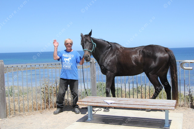 Glen Martin taking his horse, Susan, for her New Year’s Day walk at Aldinga Beach. (Dee Elferink: 526718_01)