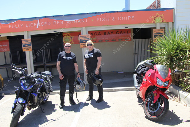 Matt Gardner and Hayley Chappell stopped for a coffee in Aldinga while riding their motor bikes on a sunny New Year’s morning. (Dee Elferink: 526718_03)