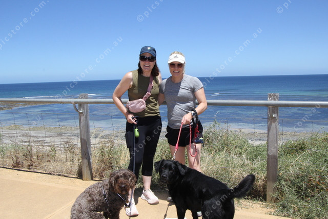 Caroline Gerard and Milo met up with Abbey Bailey and Tilly for a New Year’s Day beach walk. (Dee Elferink: 526718_08)