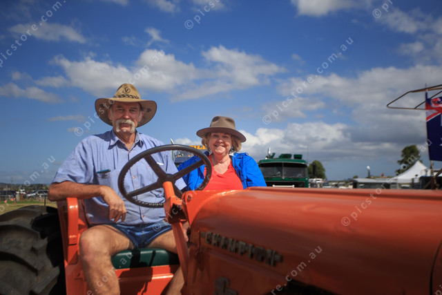 Jack and Dianne Barry from Warwick on one of their large collection of Versatile and Chamberlain tractors. Picture by Chris Munro