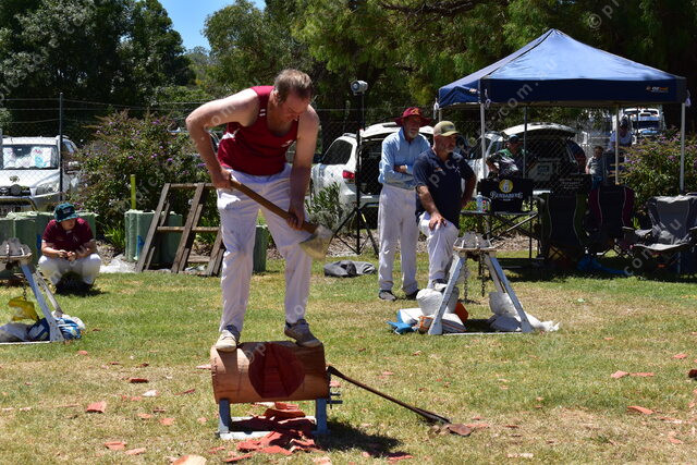 Stanthorpe’s Brendon Dunn lets loose in the woodchopping arena. (Jeremy Cook: 533561)