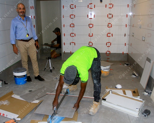 CONSTRUCTION: Alice Plaza manager, Eli Melky inspects the progress of work in one if the new toilet areas. )PIC: PHIL WILLIAMS 469998_02)