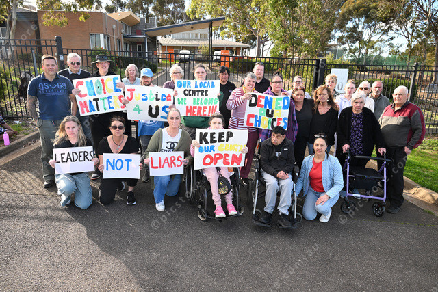 The disability day centre has been shut down in Bacchus Marsh. Pic of some of the staff and participants protesting. (Damjan Janevski). 497420_02