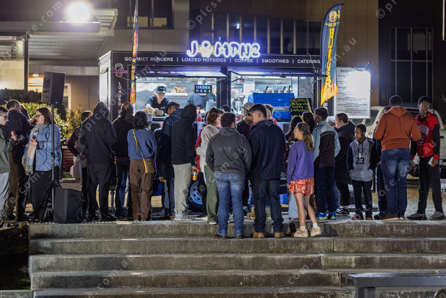 Lining up for the two food trucks.