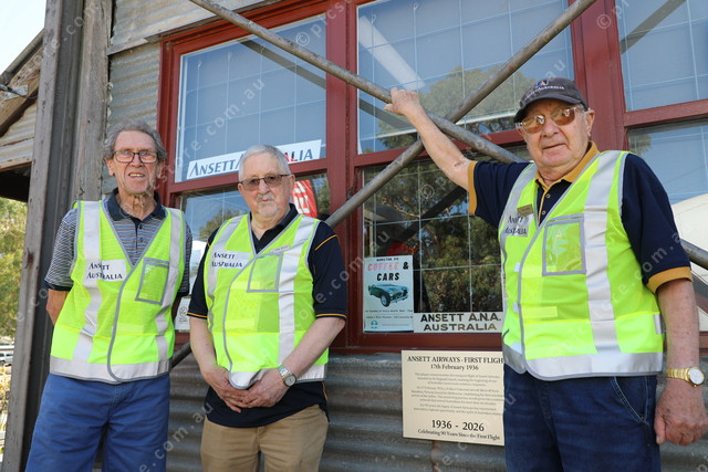 Unofficial unveiling of the plaque, Wes Walter, Allan Brewis and Ron Miller, all from Hamilton.