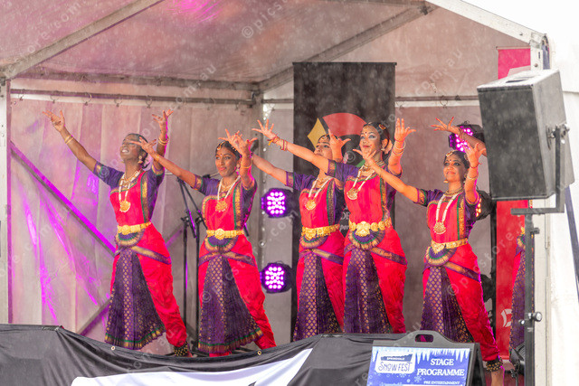Indian Dancers on the main stage, the crowd was minimal due to the rain, here the rain got much heavier.