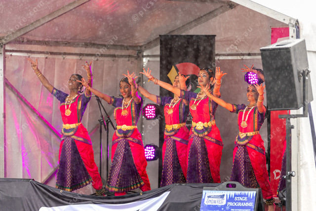 Indian Dancers on the main stage, the crowd was minimal due to the rain, here the rain got much heavier.