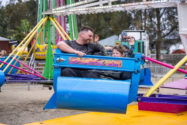 L-R Tyson (Dad) and Phoenix from Hampton Park, both loving this ride atthe show.