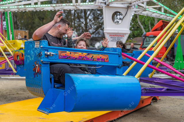L-R Tyson (Dad) and Phoenix from Hampton Park, both loving this ride atthe show.