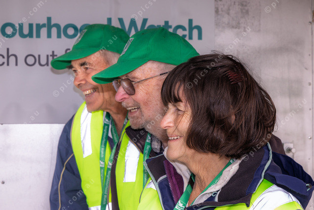 Members of Casey Neighbourhood Watch replicate part of their logo, I only needed a Police officer.