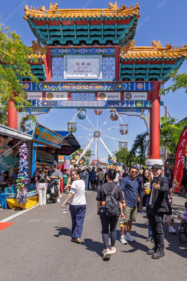 Crowded Buckingham Ave and stall holders.