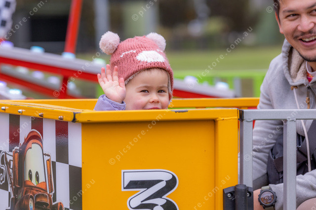 L-R Elodie with her Dad Christophe from Noble Park on one of the rides.