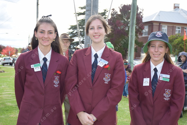 Jessica Hiscock, Brylie Gow and India Poole were honoured to take charge of the flag at the official service.