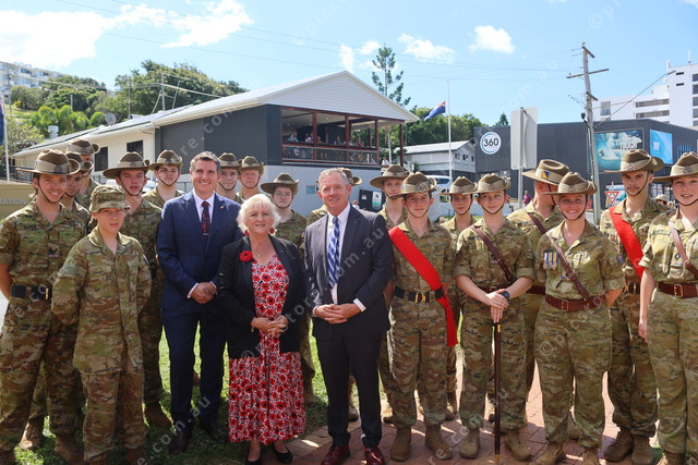 MP Nigel Hutton, MP Michelle Landry and Mayor Adam Belot with the Yeppoon army cadets.