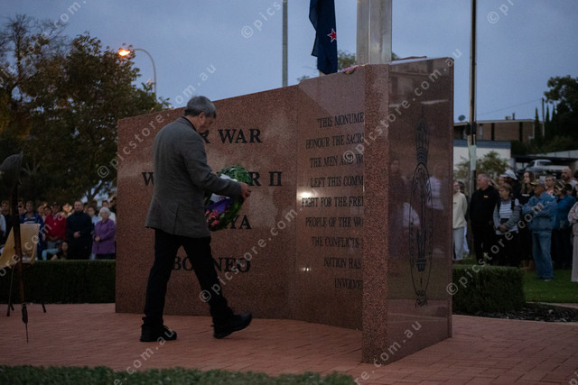 Port Lincoln RSL sub-branch president Gary Clough laid a wreath. (471172_01)