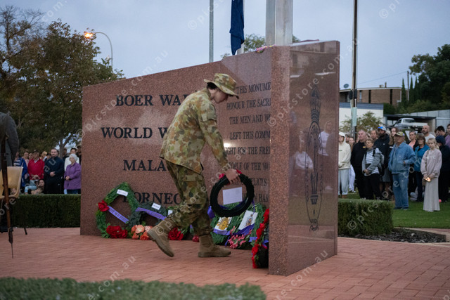 Harrison Page lays wreath for the 416 Army Cadets Unit Port Lincoln. (474172_07)