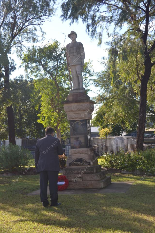 Paul Haeusler laying a wreath at the Kaimkillenbun Anzac service.