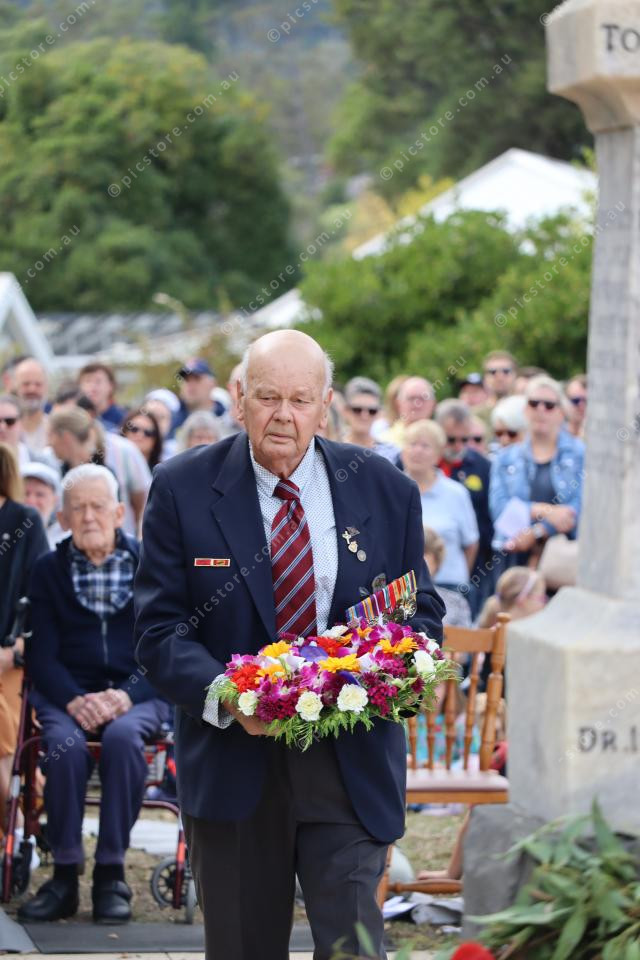 Mt Evelyn RSL member and Vietnam veteran Doug Hill laid the first wreath. (Mikayla van Loon: 474267)