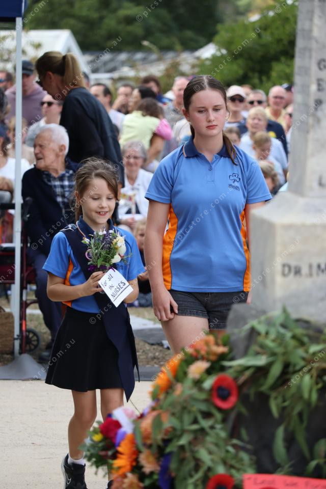 Two Girl Guides place the tribute to all nurses who served at the base of the cenotaph. (474267)