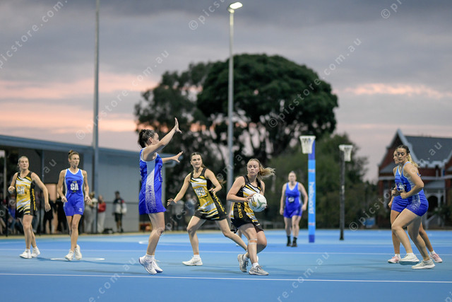 Midcourter Rachel Hansen looks for an option down the court. (Lara Fitzpatrick 474951)