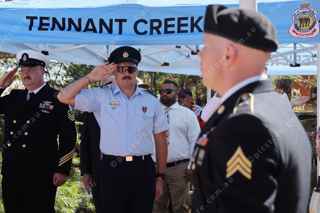 SALUTE: Service men salute as the Last Post id played during the Tennant Creek Service. (PIC: HELEN KEMP)