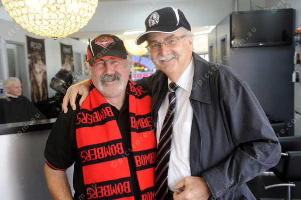 PLEASE NOTE: THIS JOB IS 10.45… Get a pic of Anzac rivals Ray Canobie and Graham Treolar, who have been to all but one of the Essendon v Collingwood clashes.