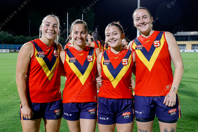 Central District’s Lauren Breguet, Madison Lane, Laitiah Huynh and Katelyn Rosenzweig represented the Bulldogs in Friday night’s SANFLW-VFLW clash at Alberton. (Mark Willoughby: 471810_01)