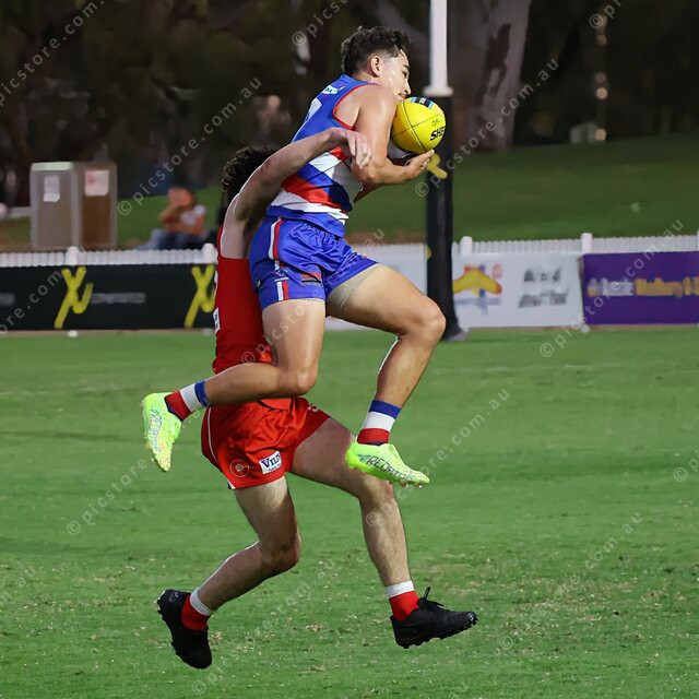 Tyler Best takes a contested mark on his chest. (473103_04)