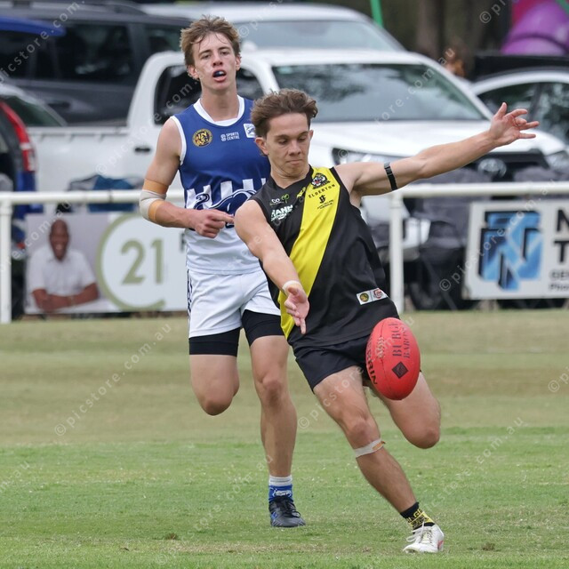 Nuriootpa’s Ethan John goes with the right-hand ball drop for his left-footed kick. (Michael Slattery: 474582_01)