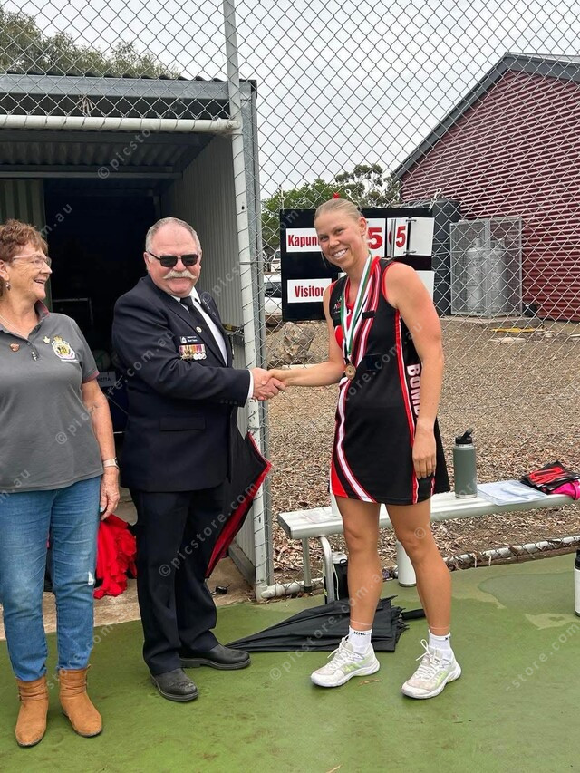 Kapunda’s Kim Seelander was honoured with the Anzac Day Medal after racking up 30 goals against Freeling. (Supplied)