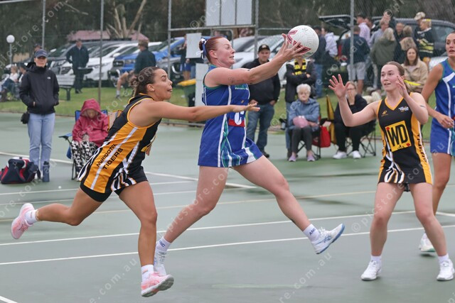 Elizabeth South leads strongly at the ball as Ella Davey gives chase. (474480_10)