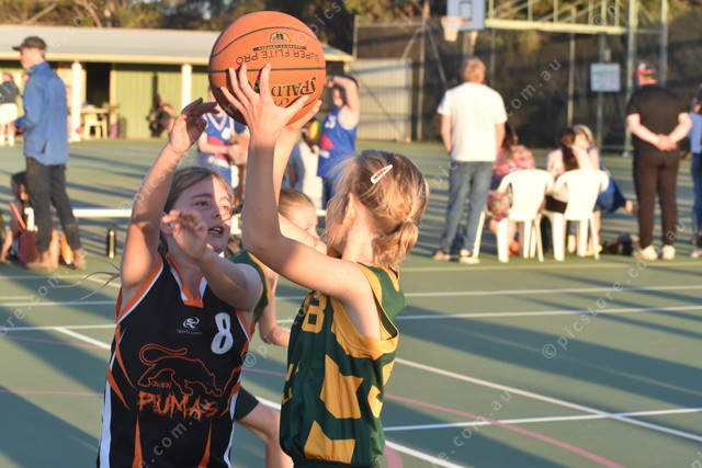 Wildcats’ Holly Zerk with the ball against Panthers’ Evie Kennison. (514483)