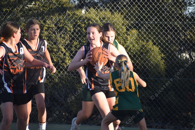 Owen’s Brydie Curnow looks for a passing option as Vipers’ Sage Friedrichs defends. (534662)