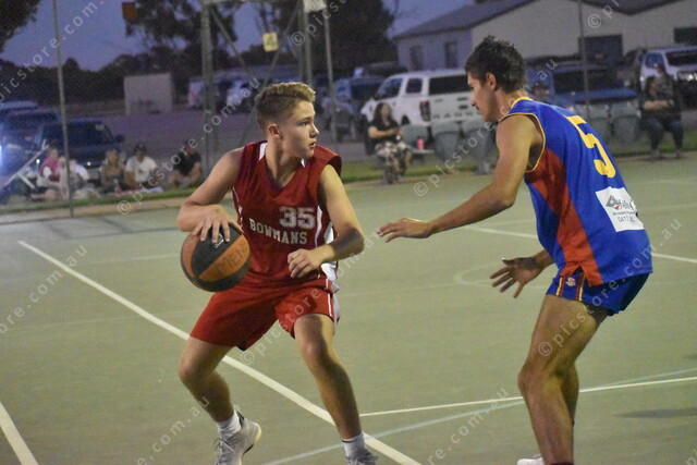 Bowmans Battlers’ Henry Evans tries to find an option near the basket as Eagles’ Flynn Young defends. (456912)