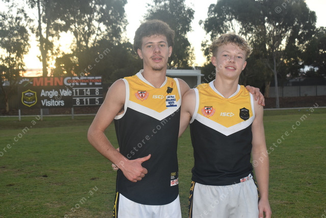 Under 17s Jamahson Davies (left) and Tyler Dark played their first A Grade game for Angle Vale against United. (Jarrad Delaney: 487150)