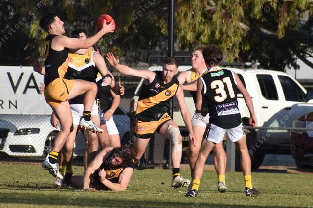 United’s Jake Houston tries to get his hands on the contested footy against Angle Vale. (487150)