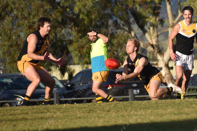 United’s Bailey Jones sends a diving handball towards teammate Heath Pym. (487150)