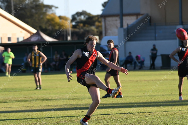 Zac Fairle slots one through for the Bombers. (494057)