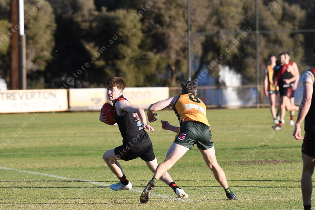 Bomber Angus Judd tries to shake off Pecker Tim Zavrl. (494057)