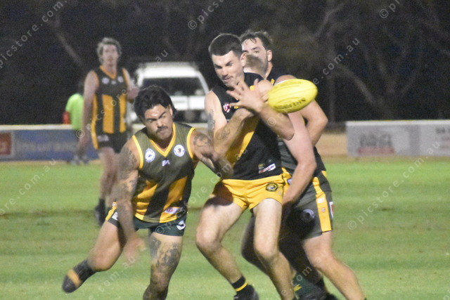 United’s Kobi Russell attempts to secure the mark. (477241)