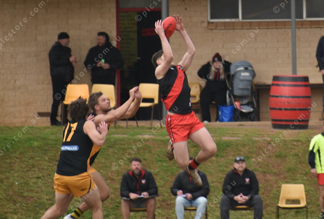 Hamley Bridge’s Jackson Dilena takes the mark on the lead. (491030)
