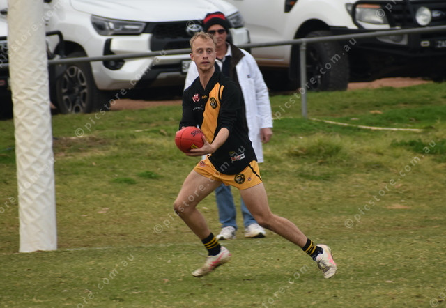 United’s Bailey Jones begins to move the ball out of defence. (491030)