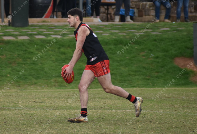 Jackson Dilena lines up for one of his three goals for Hamley Bridge. (491030)